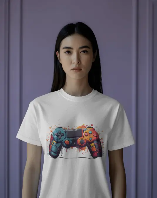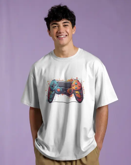 Show off your gamer vibe in style! This oversized white t-shirt features a vibrant dual-color gaming controller print that adds a splash of color and personality to your look. Made with breathable cotton, this unisex design is ideal for lounging, gaming, or heading out with friends. Whether you’re into vintage graphics or oversized fits, this tee is the ultimate power-up.
